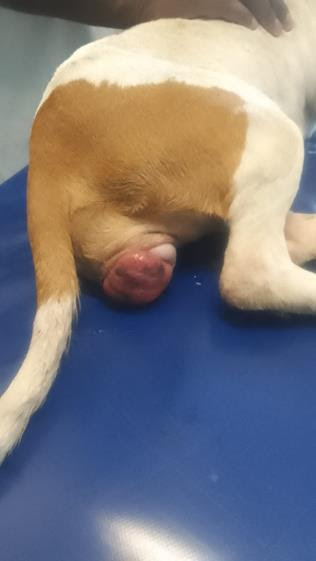 Our team was called to a heartbreaking scene in a Township a few weeks ago, to a dog suffering from an extreme case of prolapse. This is caused by weakened supporting pelvic muscles resulting in pelvic organs like the uterus or bladder dropping from their normal position.